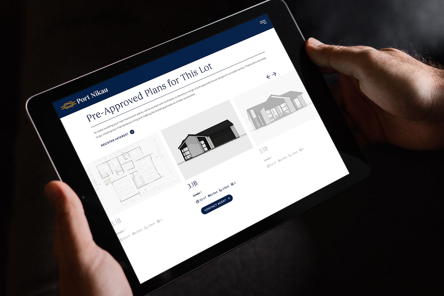 With the extensive list of sections and housing designs available at Port Nikau, changing a design, moving to another section or even undertaking boutique design and build is all achievable. Check with your chosen builder for advice on plan flexibility and adherence with Port Nikau Design Guidelines. Once you have an idea of the home you want to build, we recommend you ask your building company to contact us and ‘reserve’ the section for you for a short time so you can firm up your plans and budget while not losing the section availability to another purchaser.